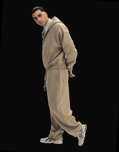 Relaxed wide-leg silhouette with a loose drape from hip to hem.